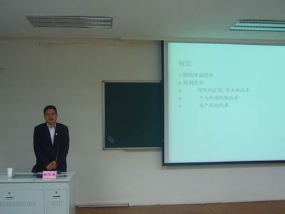 杨主任首先对“财政改革的重要性和方向”进行了简单的讲解,让现场师生对财政体制改革有了更为深刻的认识,也让大家对当前财政体制的弊端有了更为详细的了解。接着,杨主任讲述了财政改革的具体措施以及有关个人所得税和房产税的争议。在最后的提问环节中,同学们积极踊跃提问,杨主任对所提问题都进行了耐心细致的解答。