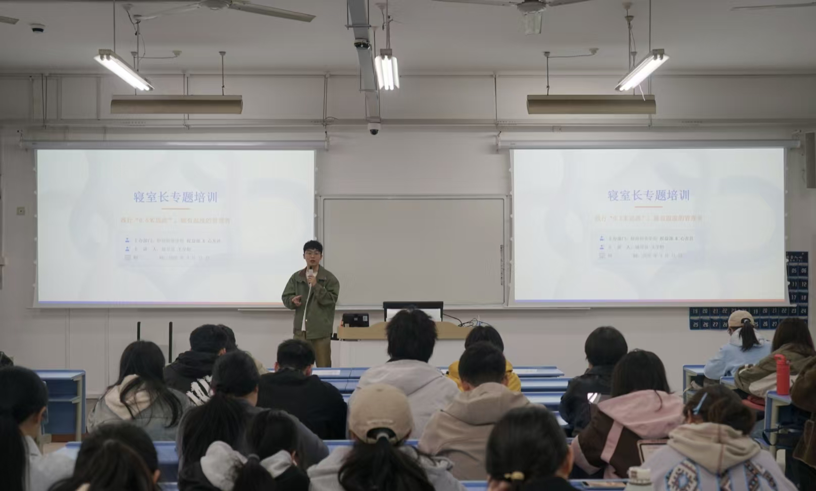 培训中,结合本科生、研究生不同学习生活特点,明确两类寝室长在卫生管理、安全用电、晚归排查、反诈等日常工作中的具体职责,细化工作要求。